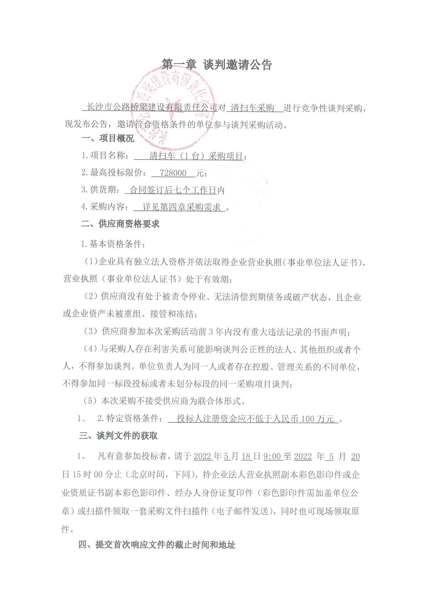 清掃車采購(gòu)項(xiàng)目競(jìng)爭(zhēng)性談判公告